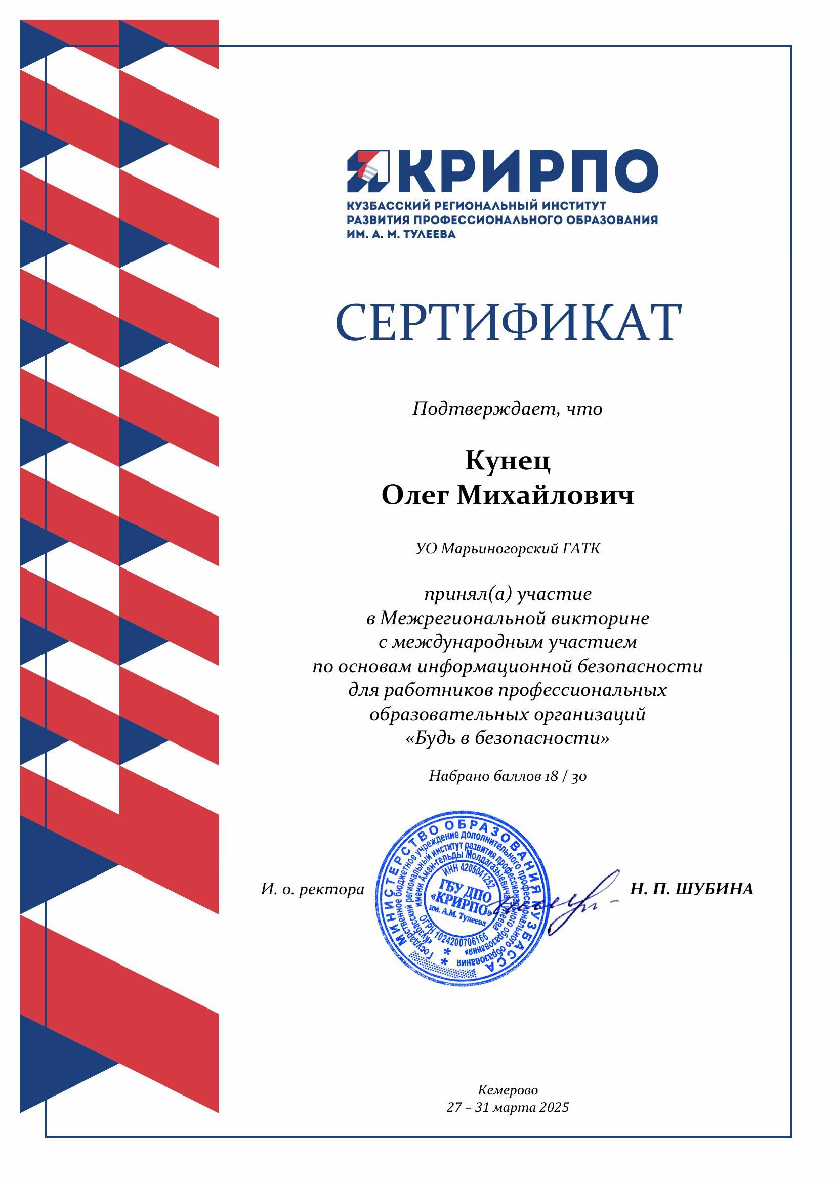 - Куратору учебной группы