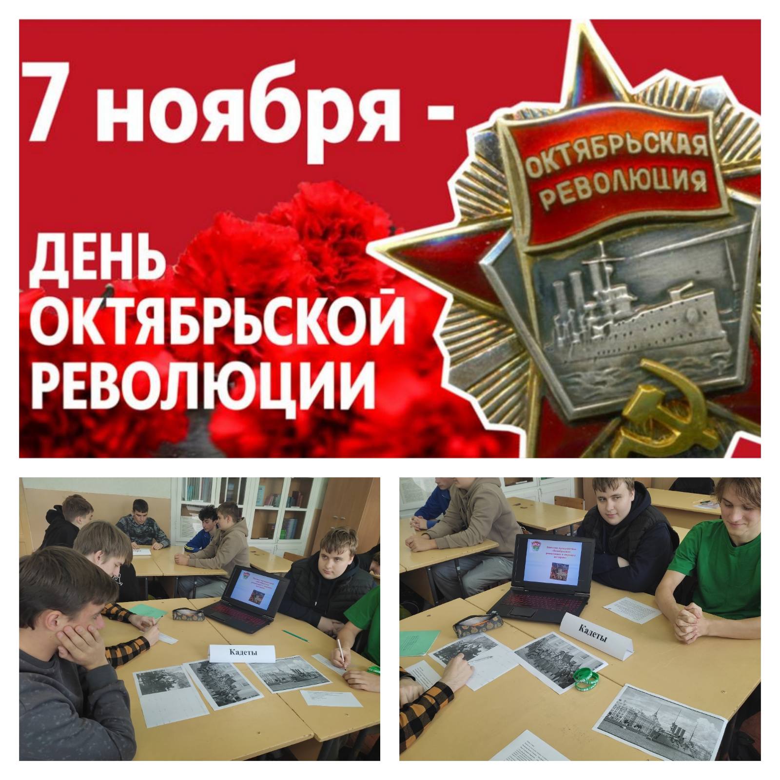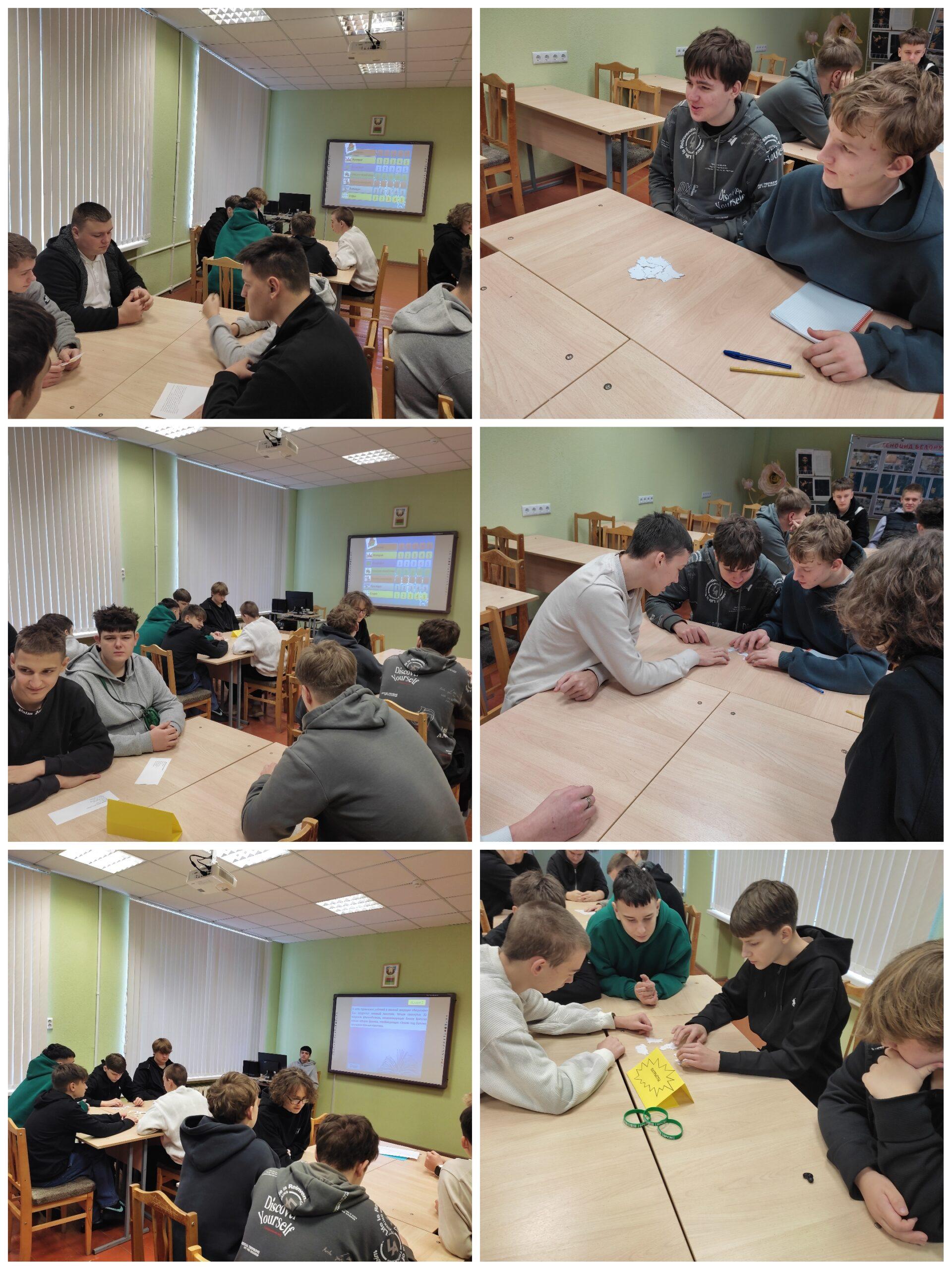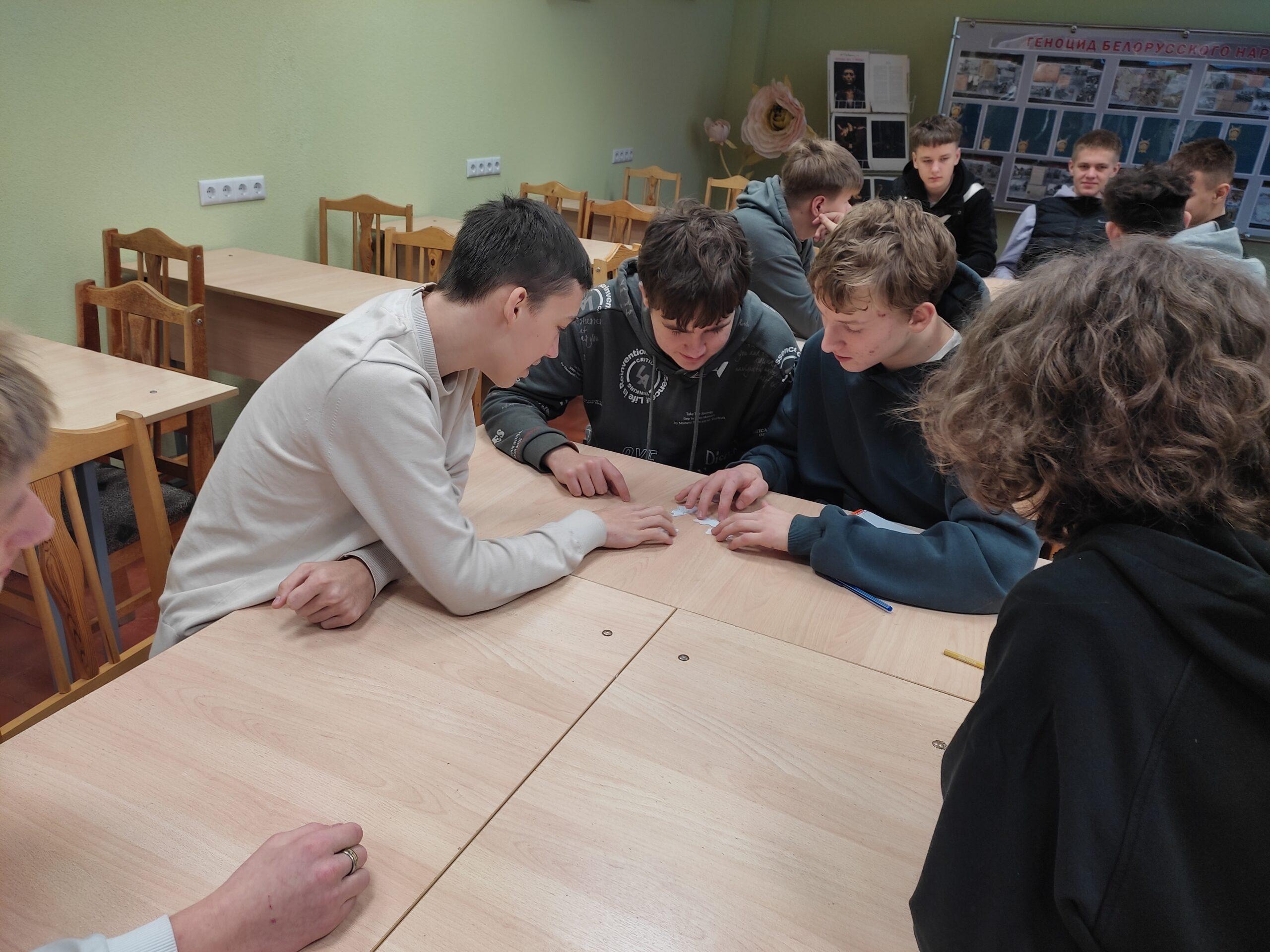6 ноября 2025 года активисты ПО ОО «БРСМ» 131М учебной группы, разделившись на команды, отправились в путешествие «Октябрьская революция в зеркале истории». Решали кроссворд, соотносили имена революционных деятелей с описанием, располагали события в хронологической последовательности. Победителями стали Васильев Владимир, Савинский Егор, Левчик Вадим.