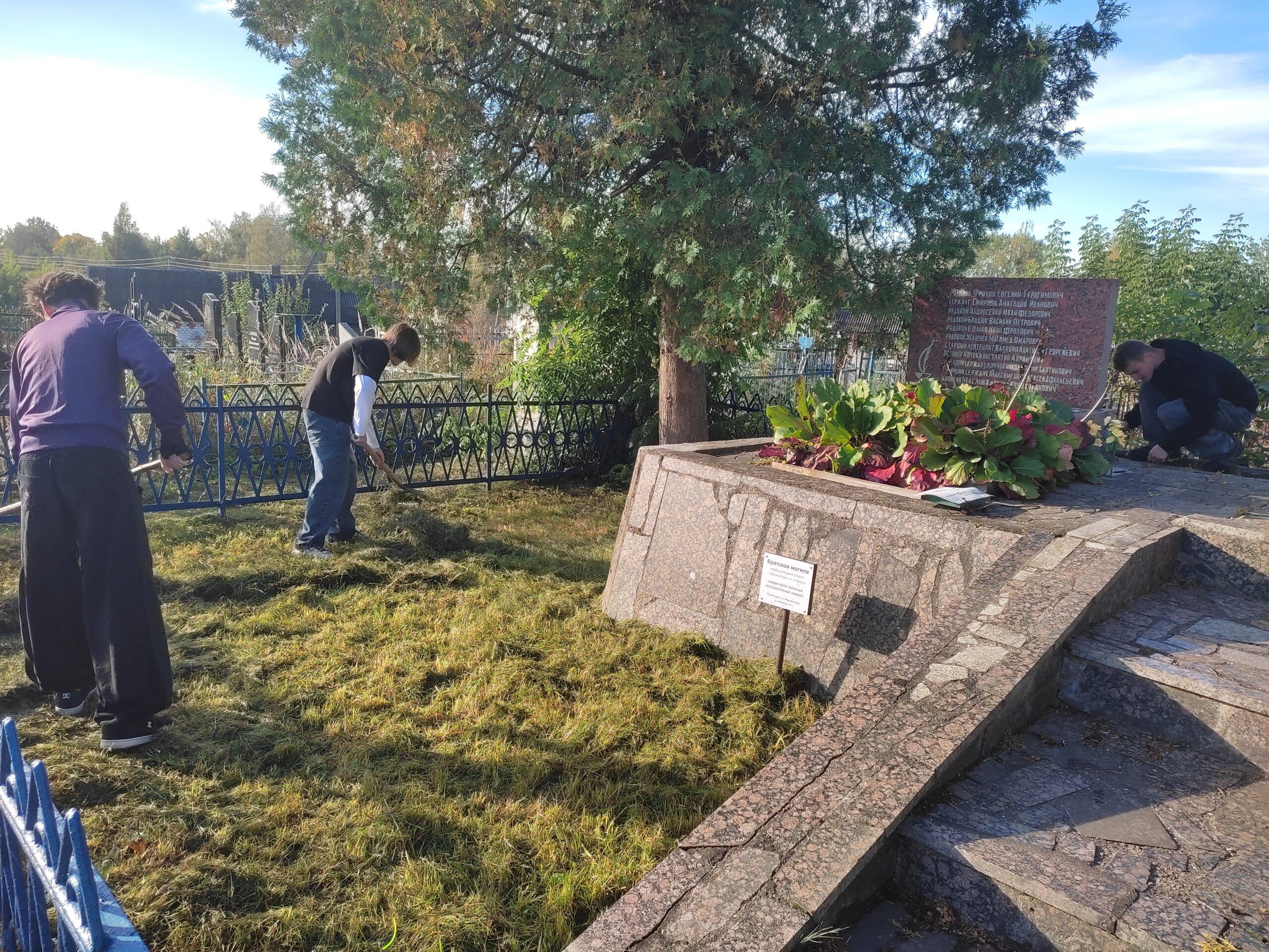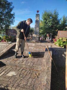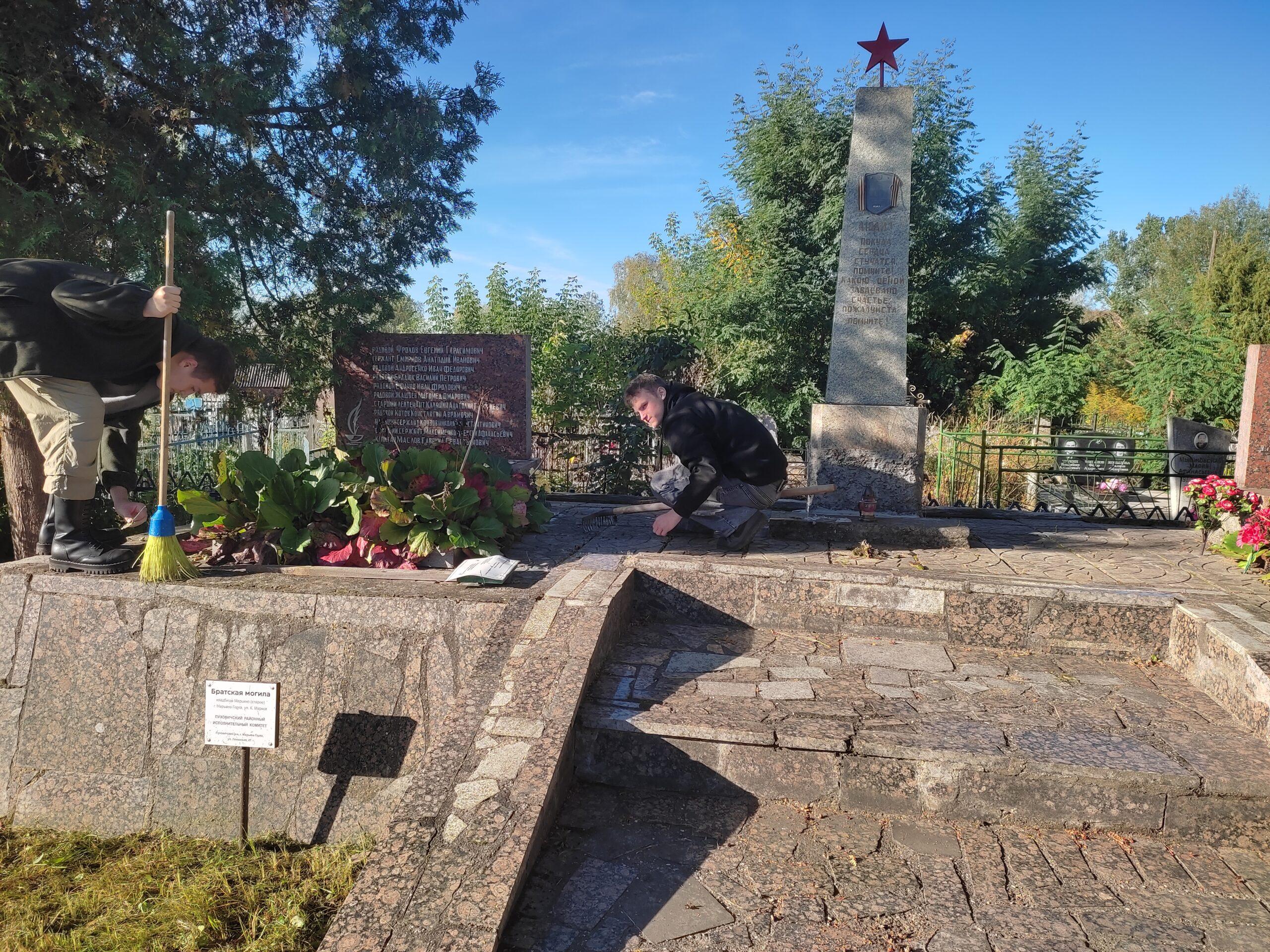 Память о погибших защитниках Родины в годы Великой Отечественной войны хранят тысячи мемориалов, воинских захоронений и памятников по всей территории Беларуси. Благоустройство воинских захоронений – почетная обязанность благодарных потомков, это дань мужеству и стойкости поколениям, прошедшим войну. 22 сентября 2025 года волонтеры отряда «Крылья Ангела» 129М учебной группы навели порядок на Братской могиле. Активисты очистили территорию от опавших листьев и веток, собрали мусор, вычистили плиту памятника. Благодаря дружной и слаженной работе наведён порядок.