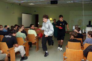 09.10.2025 года в общежитии №2 прошла конкурсная программа «С новосельем» для учащихся нового набора, 2 команды «старожилы» и » новечки» соревновались в умении выживать,потом новички произнесли клятву, где обязуются выполнять все правила проживания, в заключении все вместе исполнили песню «Вместе весело шагать»