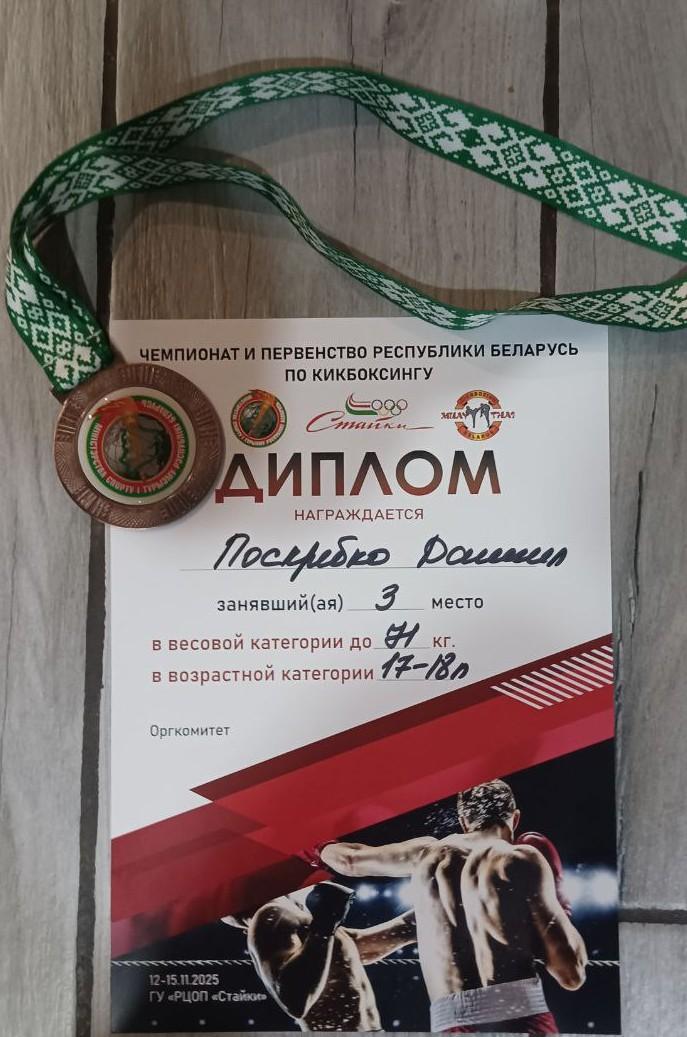 Особенно приятно отметить достойное выступление учащегося Марьиногорского государственного АТК Поскребко Даниила. Проявив недюжинную силу, выдержку и мастерство, Даниил завоевал почетное III место. Эта победа – результат упорных тренировок, самоотдачи и целеустремленности юного кикбоксера.