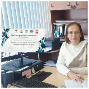 Участие руководителя народного музея истории учреждения образования Свиридовой Е.В. в работе Международной онлайн конференции «Вечно живые», организатором которой является Московский государственный педагогический университет, отмечено Сертификатом.