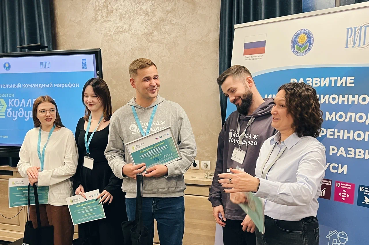21.10.2025 учащиеся Марьиногорского государственного аграрно-технического колледжа имени В.Е. Лобанка – Машко Александр, Макарова Ульяна, Гулевич Алина совместно с руководителем по военно-патриотическому воспитанию Шайтановым П.С. стартовали в инновационном образовательном марафоне, основанном на командной проектной работе Креатон «Колледж будущего», на котором представили VR-проект для аграриев. Платформа позволяет проводить виртуальные химические опыты и изучать болезни растений в контролируемой среде, что особенно актуально для специальностей, где важен наглядный практикум. В марафоне приняли участие всего 7 команд со всей республики.