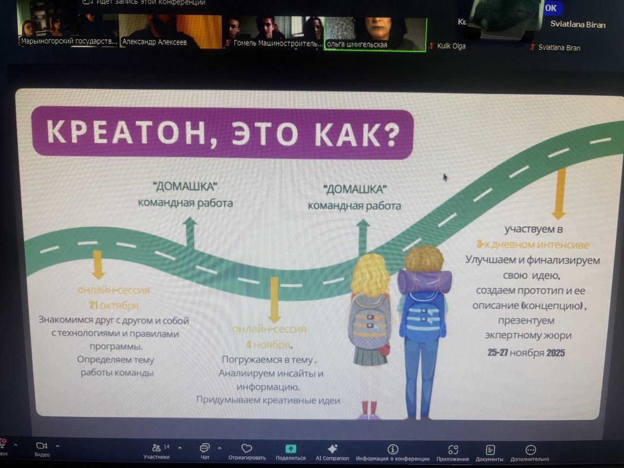 Работа над проектом, посещение онлайн-обучения длилось почти 2 месяца. Креатон проводился в контексте объявленного в 2025 году в Беларуси Года благоустройства с целью вовлечения молодежи в национальные усилия по преобразованию окружающего пространства, формированию комфортной и технологичной среды для будущих поколений.