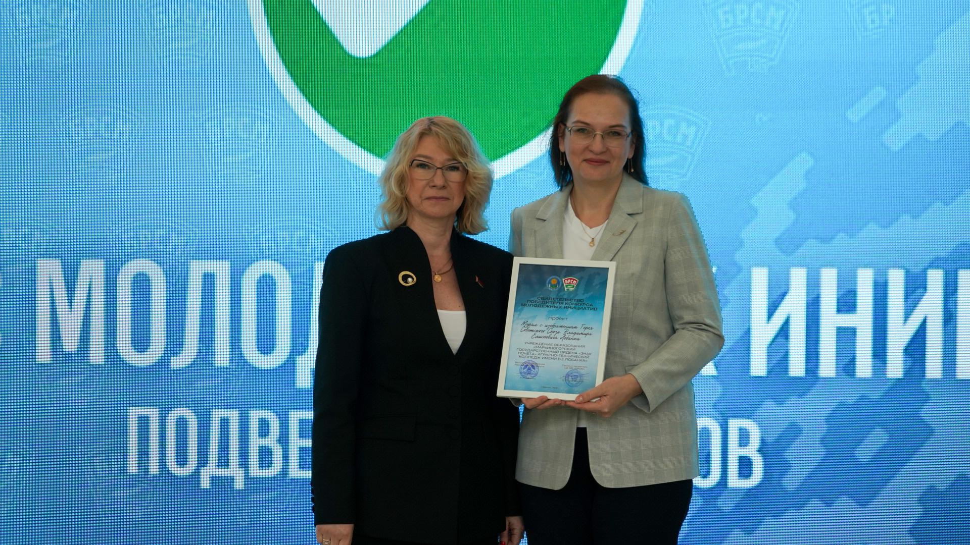 Среди счастливчиков-победителей – молодежная инициатива обучающихся учреждения образования «Марьиногорский государственный ордена «Знак Почета» аграрно-технический колледж имени В.Е.Лобанка», разработанная при поддержке руководителя народного музея истории учреждения образования Елены Свиридовой, секретаря ПО ОО «Белорусский республиканский союз молодежи» Виктории Барановской, директора колледжа Сергея Сасковца.