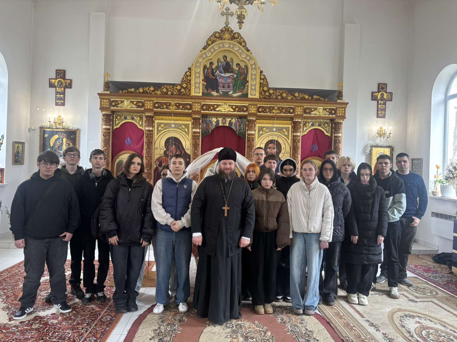 Настоятель храма отец Григорий провел для учащихся не просто экскурсию, а настоящий разговор о главном, рассказав, как неразрывно переплелись судьбы образования и церкви. Это не просто соседство, а духовная опора, заложенная в основу образования. Но главным стало другое — беседа о вечных нравственных ценностях: об уважении к родителям и преподавателям, о том, как выстроить гармоничные отношения с окружающим миром. Отдельно отец Григорий затронул темы, важные для каждого молодого человека, — о пагубном влиянии алкоголя и курения на душу и тело, призвав ребят беречь себя и свой внутренний стержень. Самые сокровенные моменты ждали ребят впереди: для них приоткрылась тайная завеса алтаря. Ребята увидели святая святых храма с благоговением и тихой радостью. А еще батюшка на своем примере научил правильно ставить свечку, объяснив глубокий смысл этого, казалось бы, простого действия.